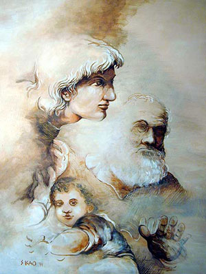 This was the first painting I did after about a 9-10 year hiatus. It was for a UC Extension class. The painting is a loosely based study of a red chalk sketch by Raphael. The baby is original and based on his cherubs. The painting's pretty stiff...